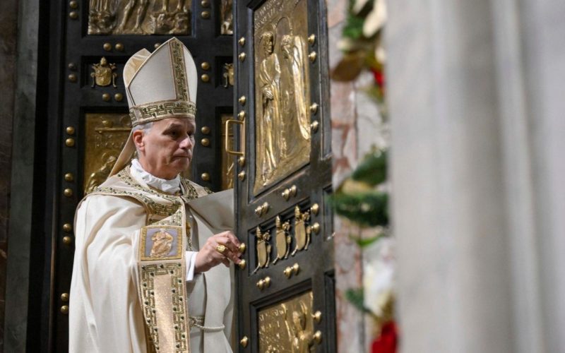 Prima della Messa, nell’atrio circondato dai cardinali – che il 7 e l’8 gennaio si riuniranno per il Concistoro straordinario -, dai vescovi e dai canonici di San Pietro, Leone XIV legge la monizione e poi l’orazione: