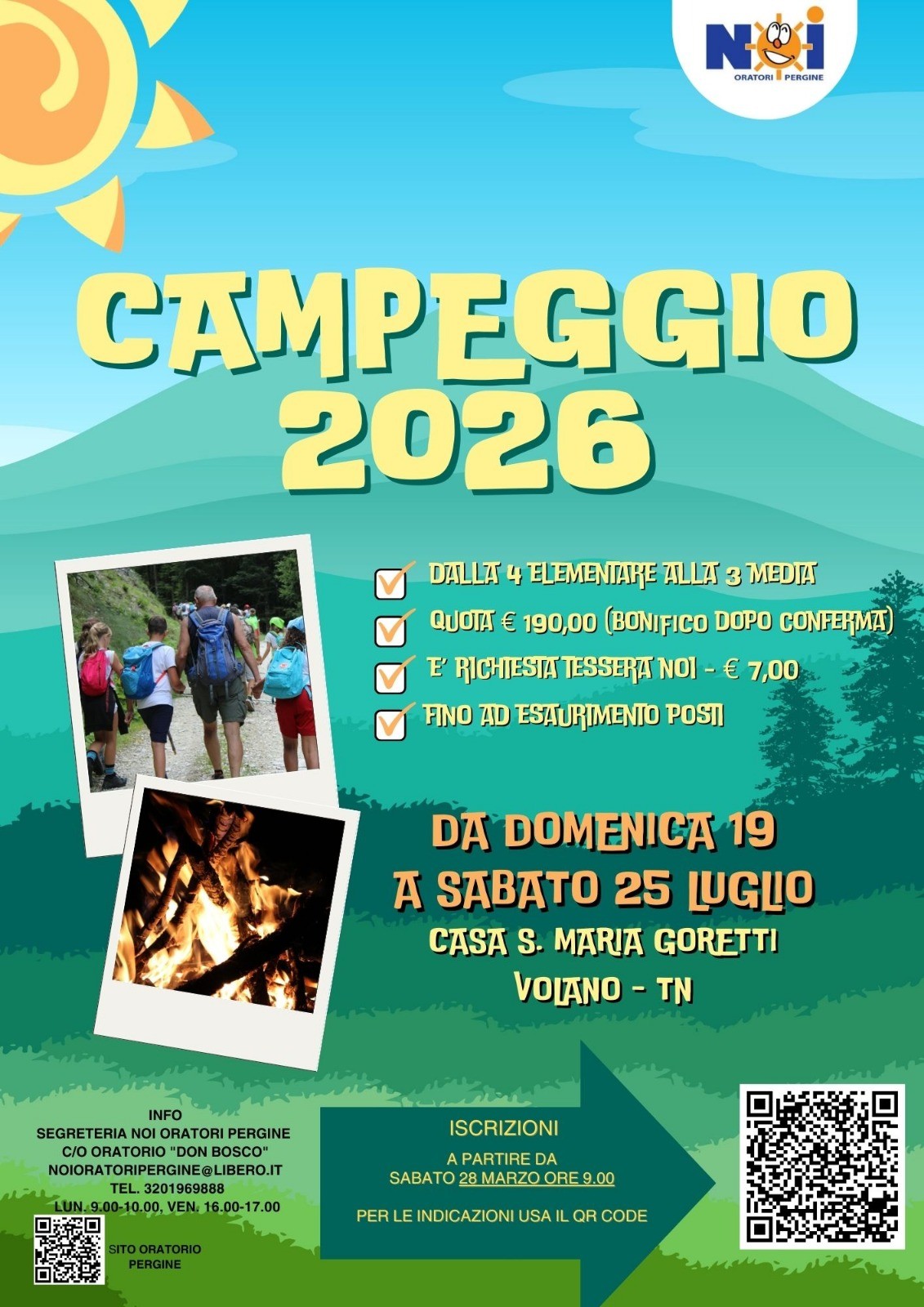 Da sabato 28 marzo sempre dalle ore 9 saranno aperte le iscrizioni al campeggio.