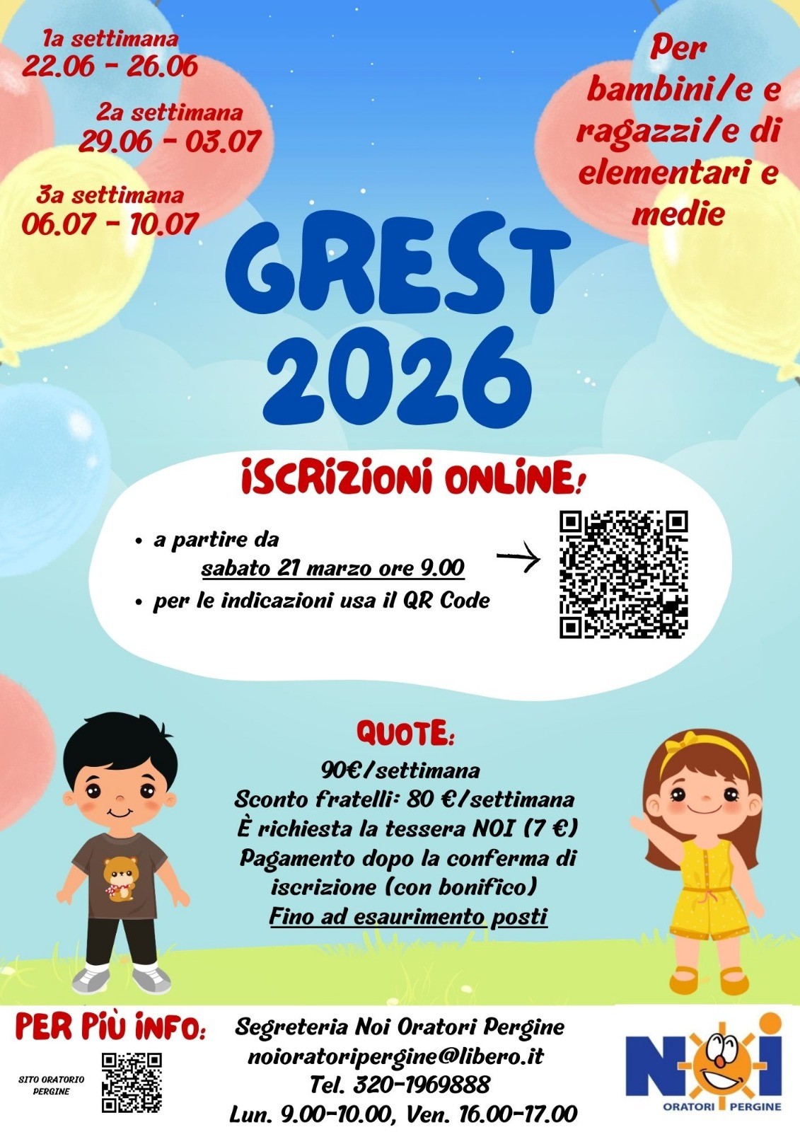 Da sabato 21 marzo alle ore 9 sarà possibile iscrivere i propri bambini e ragazzi al GrEst.