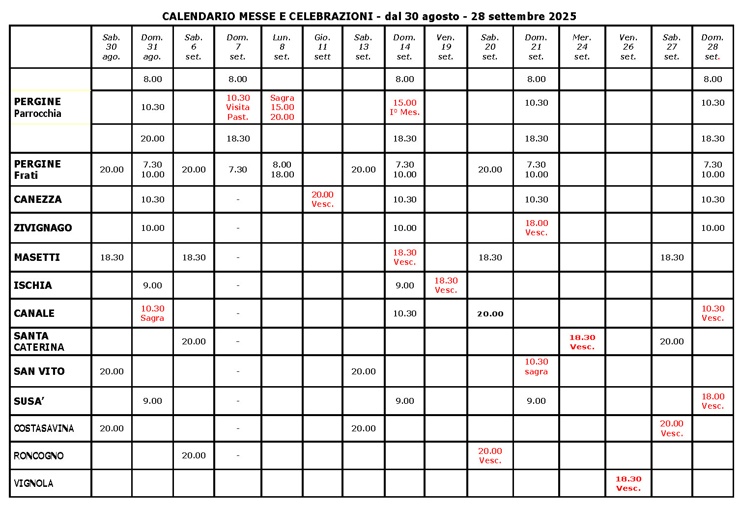 informativa generica parrocchia -Canale