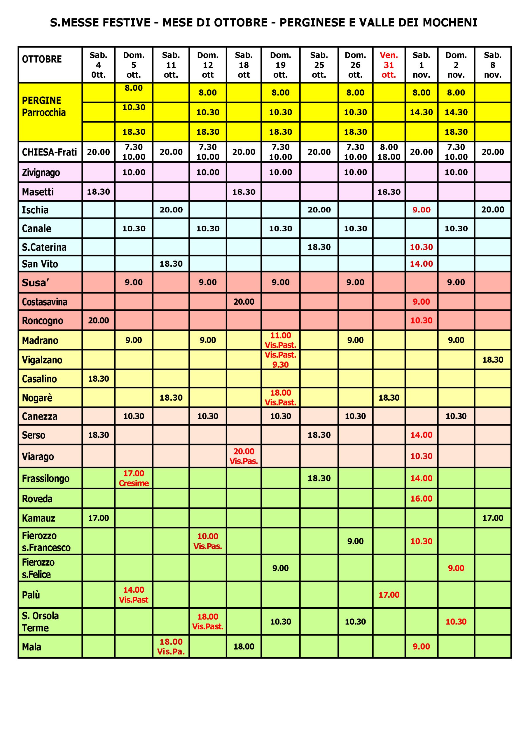 orario messe feriali autunno 2018