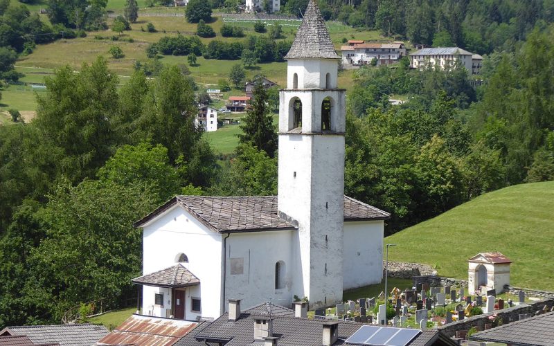 La chiesa è seicentesca, citata per la prima volta in un documento del 1696 che la dice di recente costruzione, e dal 1708 è affiancata dal cimitero; prima della sua fondazione i fedeli si servivano dell’antica chiesa di San Lorenzo, che era tuttavia lontana e scomoda da raggiungere (di essa restano solo pochi ruderi).